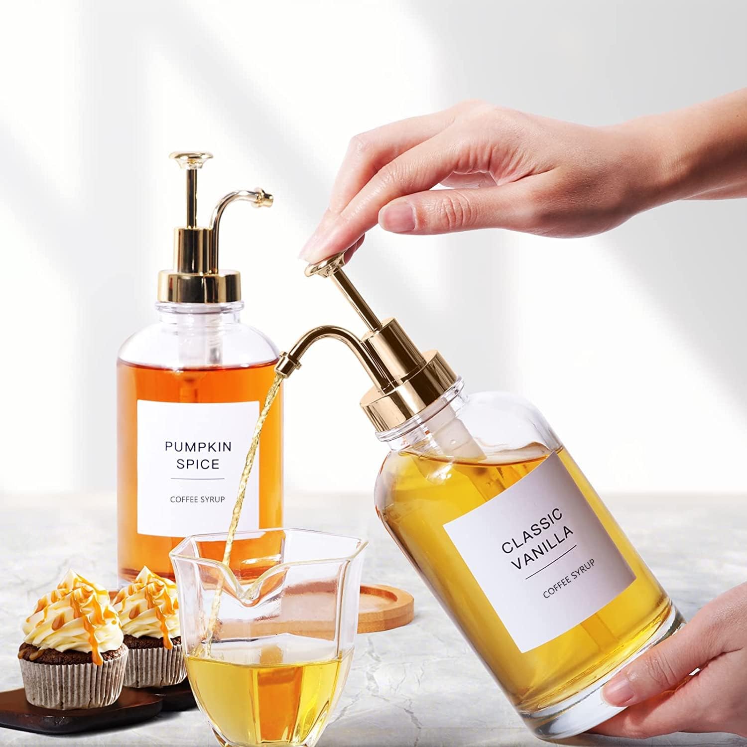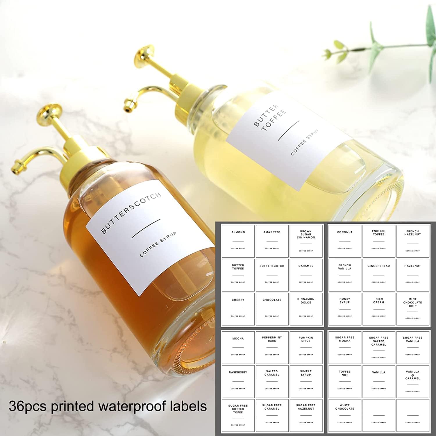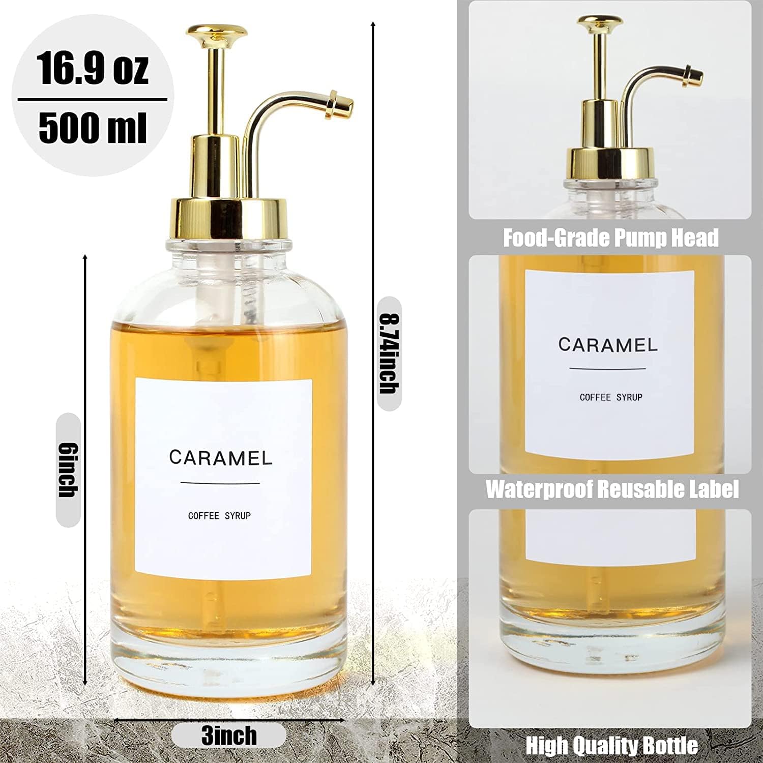 2 Pack 16.9OZ Coffee Syrup Dispenser for Coffee Bar,Transparent Glass Syrup Bottle Pump,Soap Dispenser Home Decor,for Cinnamon, Vanilla, Caramel, Gifts,with Funnel and 36 Labels
